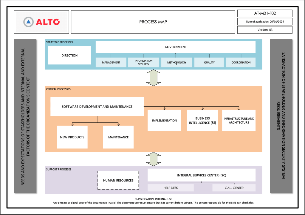 ALTO S.A. has defined the scope of the Information Security Management System, in accordance with the international standard ISO 27001:2013, as follows: