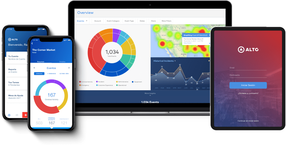The Alliance product offers assistance to its clients, offering the facility to report any type of event occurring on the premises of up to seven categories in a daily operation and that are associated with a localized risk, being possible to attach evidence, comments, suspects, or additional data. In order to keep a record of what happened, and thus streamline the effectiveness and legal efficiency in the premises, offering ease to lawyers to perform an analysis through a legal flow in the event with legal cases. As well as providing recommendations to avoid similar events thanks to the patterns and analysis provided by Alliance, which analyze the data collected previously, looking for similarities and giving suggestions to prevent similar events from occurring.